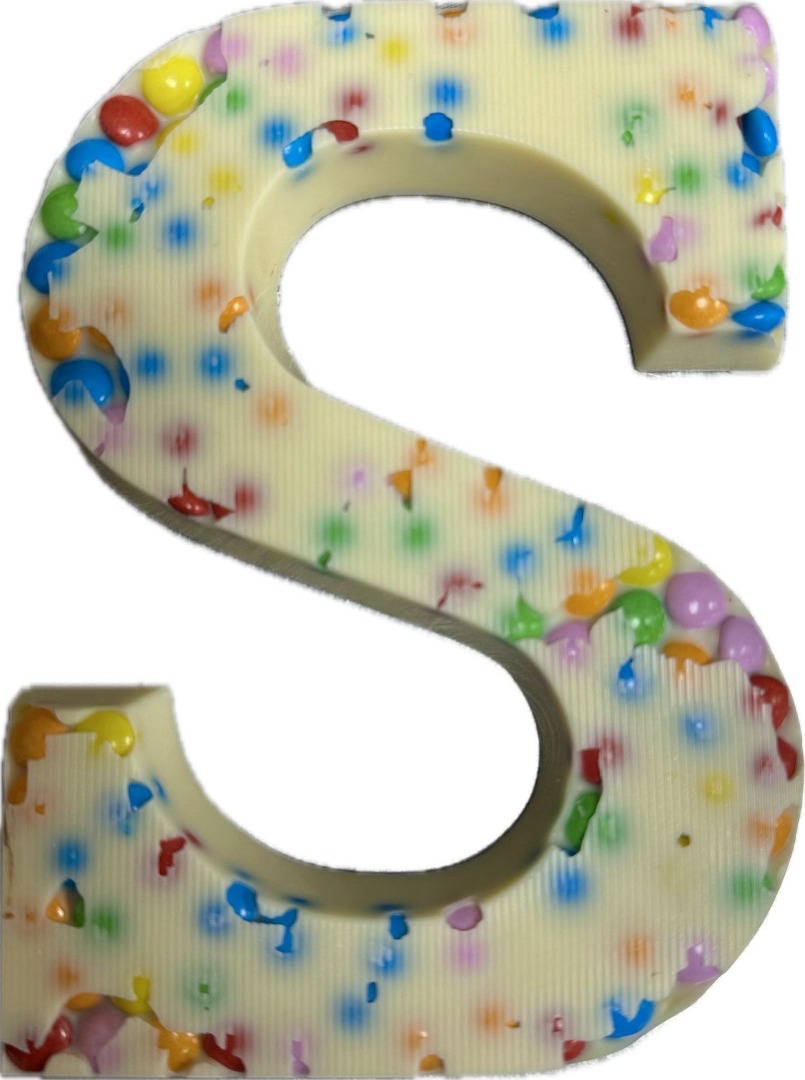 Chocoladeletter - Smarties. Wit, melk of puur. Letter naar keuze.